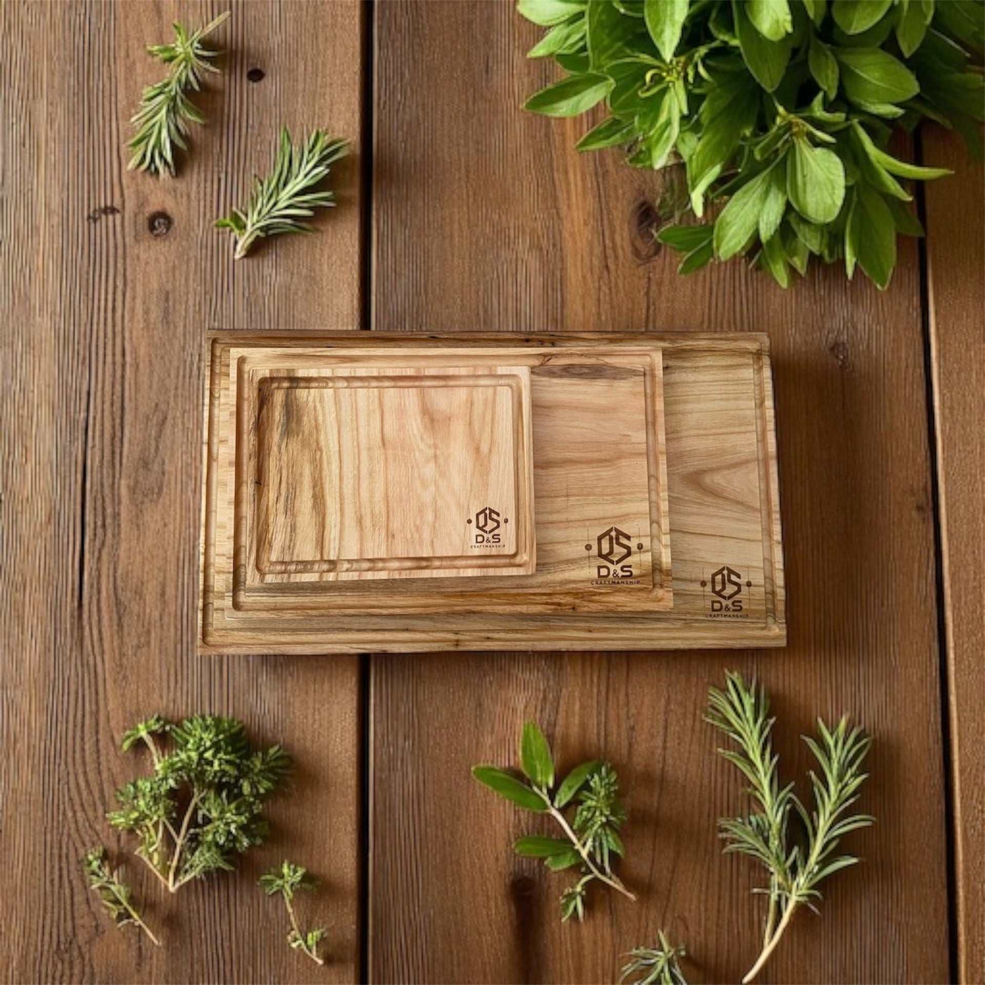Setzen Sie auf natürliche Materialien und stilvolles Design – mit diesem Kirschholz-Schneidebrett-Set sind Sie bestens ausgestattet für jeden Küchenmoment.