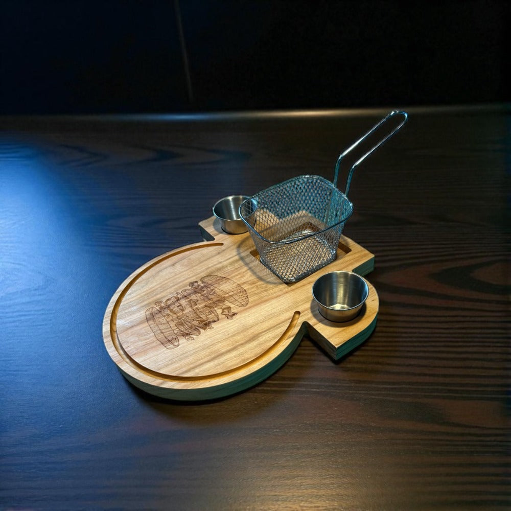 - All in One Paket - Das Burgerberett wird inklusive Pommesgitter und Saucenschalen ausgeliefert.